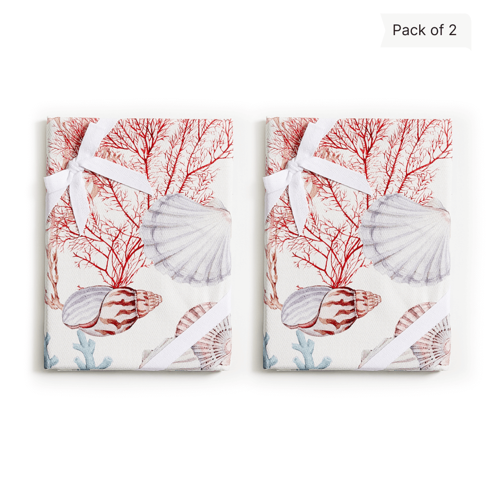- Corals and Seashells - 2 Tea Towels - 2 Items